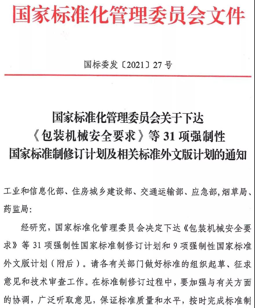 日前,《国家标准化管理委员会关于下达〈包装机械安全要求〉等31项强制性国家标准制修订计划及相关标准外文版计划的通知》正式发布,其中包含《洗涤用品安全技术规范》及其外文版标准计划,具体内容如下: