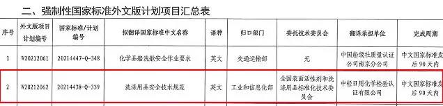 《洗涤用品安全技术规范》及其外文版纳入强制性国家标准制修订计划
