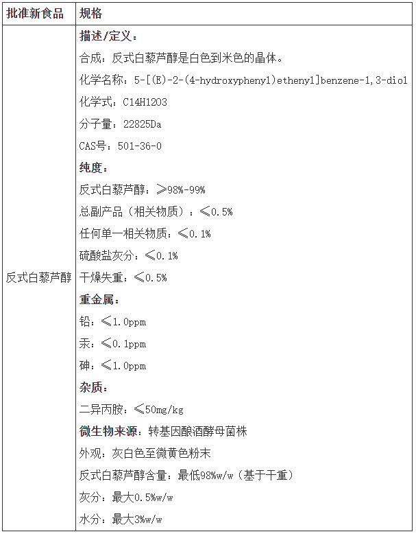 欧盟修订新型食品反式白藜芦醇的规格