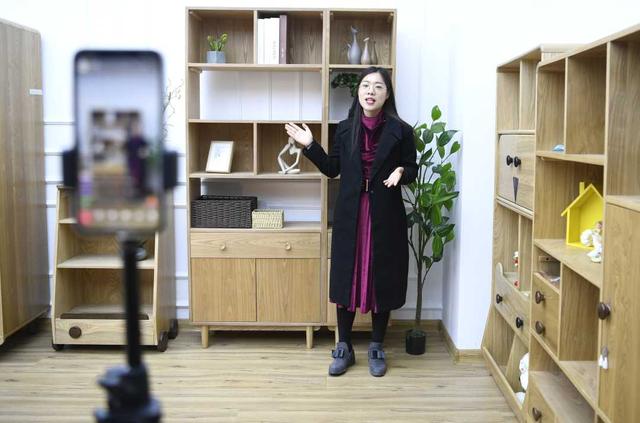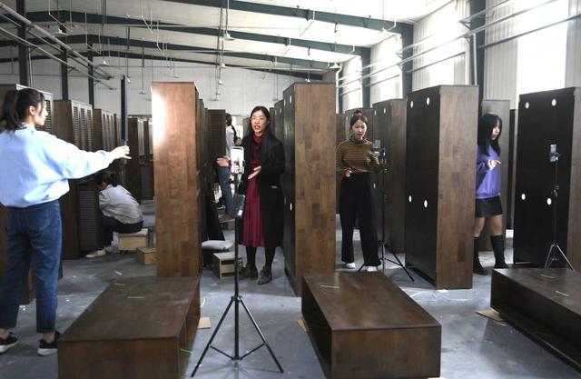 生产线轰轰作响,员工们井井有条,屏幕上红心不断……这是近日记者在位于山东省菏泽市牡丹区的天荣智能家居小镇生产车间内看到的景象,车间内,带货主播正在通过直播介绍家具的制造流程工艺,销售家具。