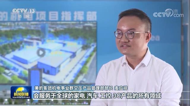 美的集团机电事业群空压产品管理部部长 麦应祥:利用工业4.0、库卡的机器人,还有自动化软硬件的技术,再结合5G、AI、云平台的数据技术,把我们的全产业打造成一个高效的、灵活的、柔性的生产线,会服务于全球的家电、汽车、工控、3C产品的所有领域。