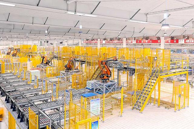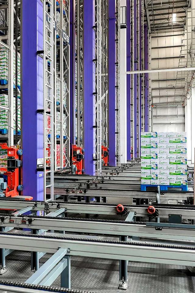 伊利集团液态奶生产基地的立体仓储系统是亚洲自动化程度最高、规模最大的立体仓储之一,其存储量可满足北京市民两至三天的饮奶需求。