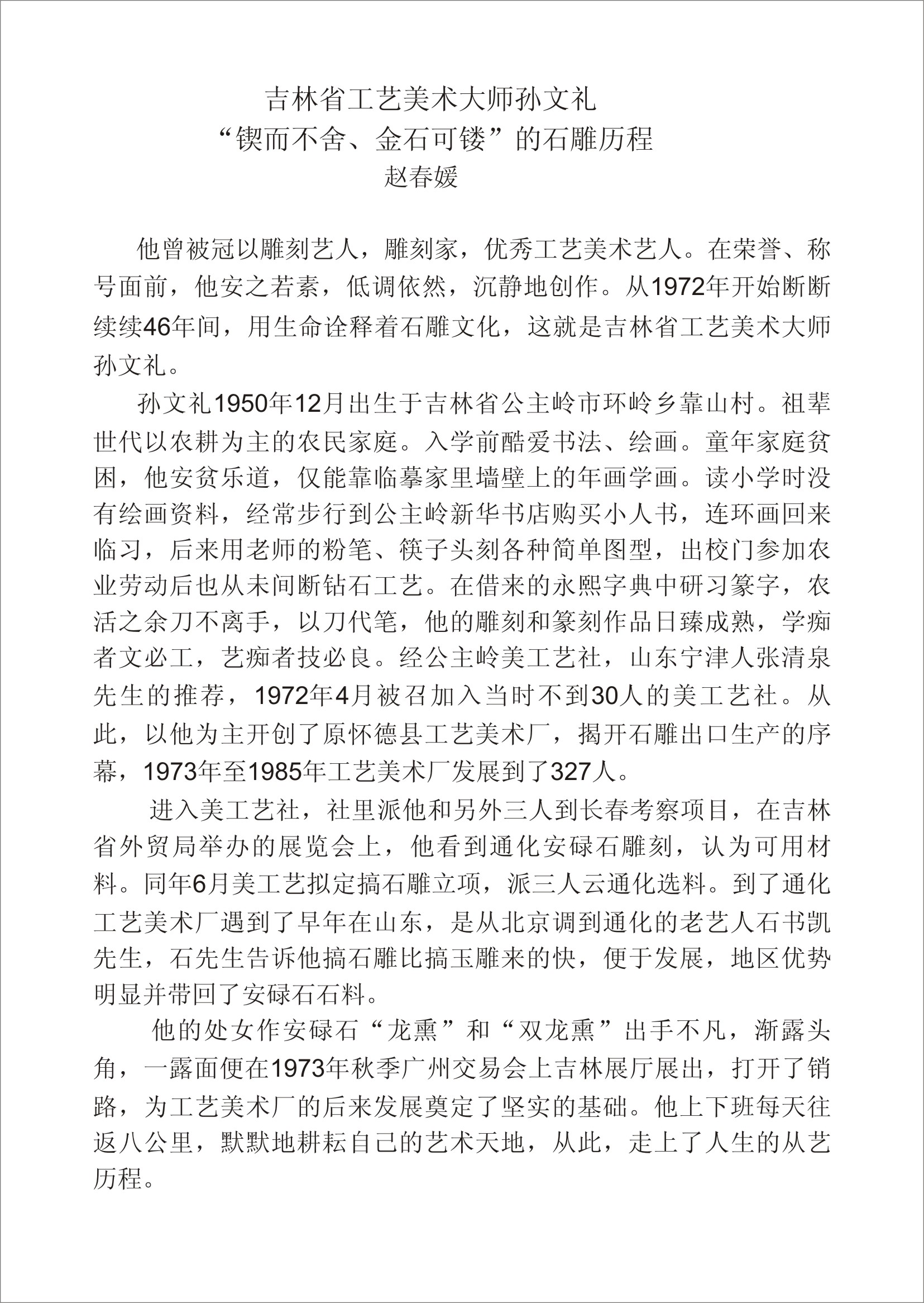 吉林省工艺美术大师------孙文礼