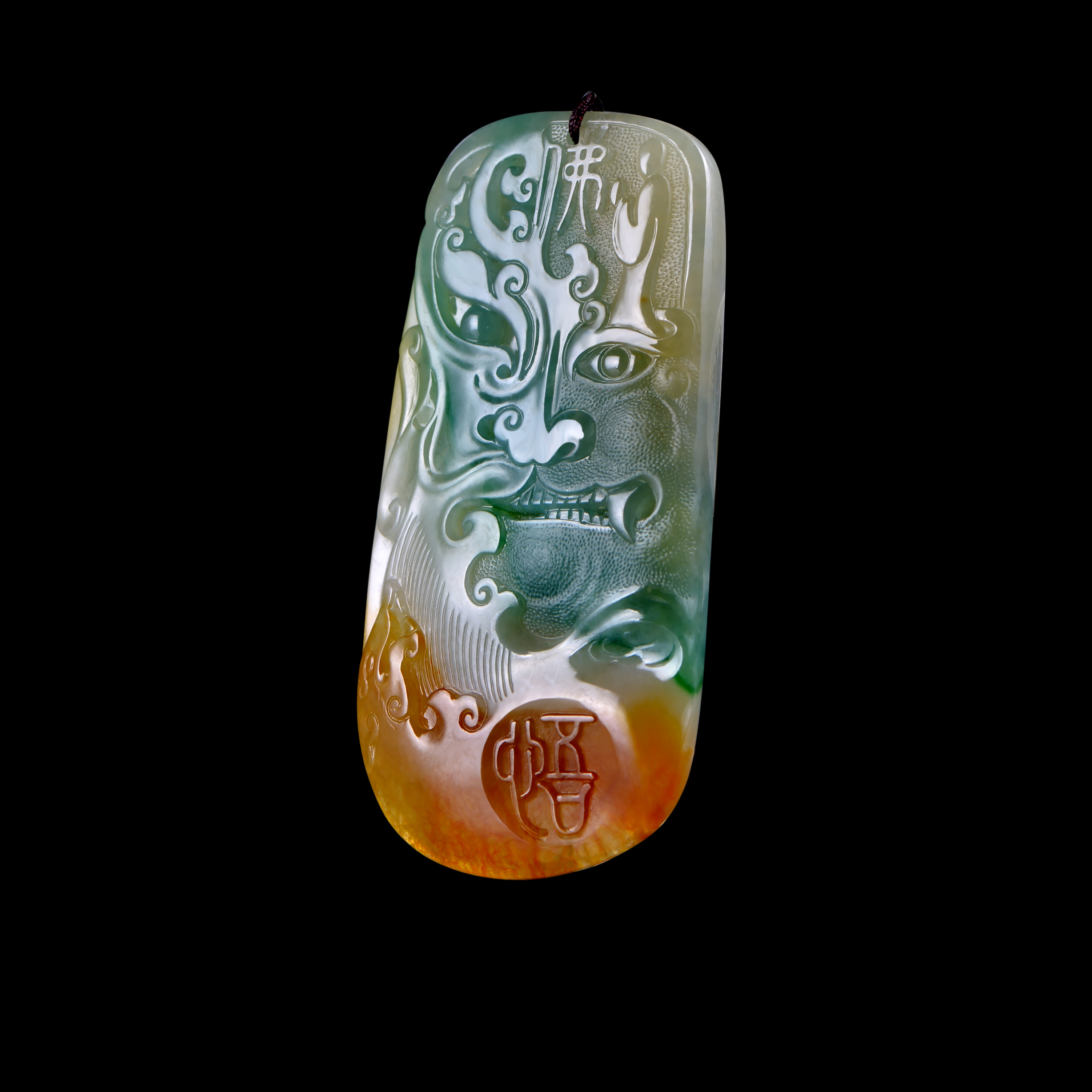 王胜利刚进入玉雕界时,对先秦时期的兽纹有着很大的兴趣,但兽纹多镌刻于青铜器上,而翡翠牌由于器型较小,水色明丽,与青铜凝练沉郁的质感不符,若是融合在一起,十分不协调,在刻苦钻研后,终于将题材定位于春秋战国时期的典籍,字体采用柔和圆匀的小篆,通过浮雕的形式,将诸子百家的思想精髓凝聚于小小翡翠牌上,让古典文化与良玉美质巧妙结合,焕发出别样光彩。