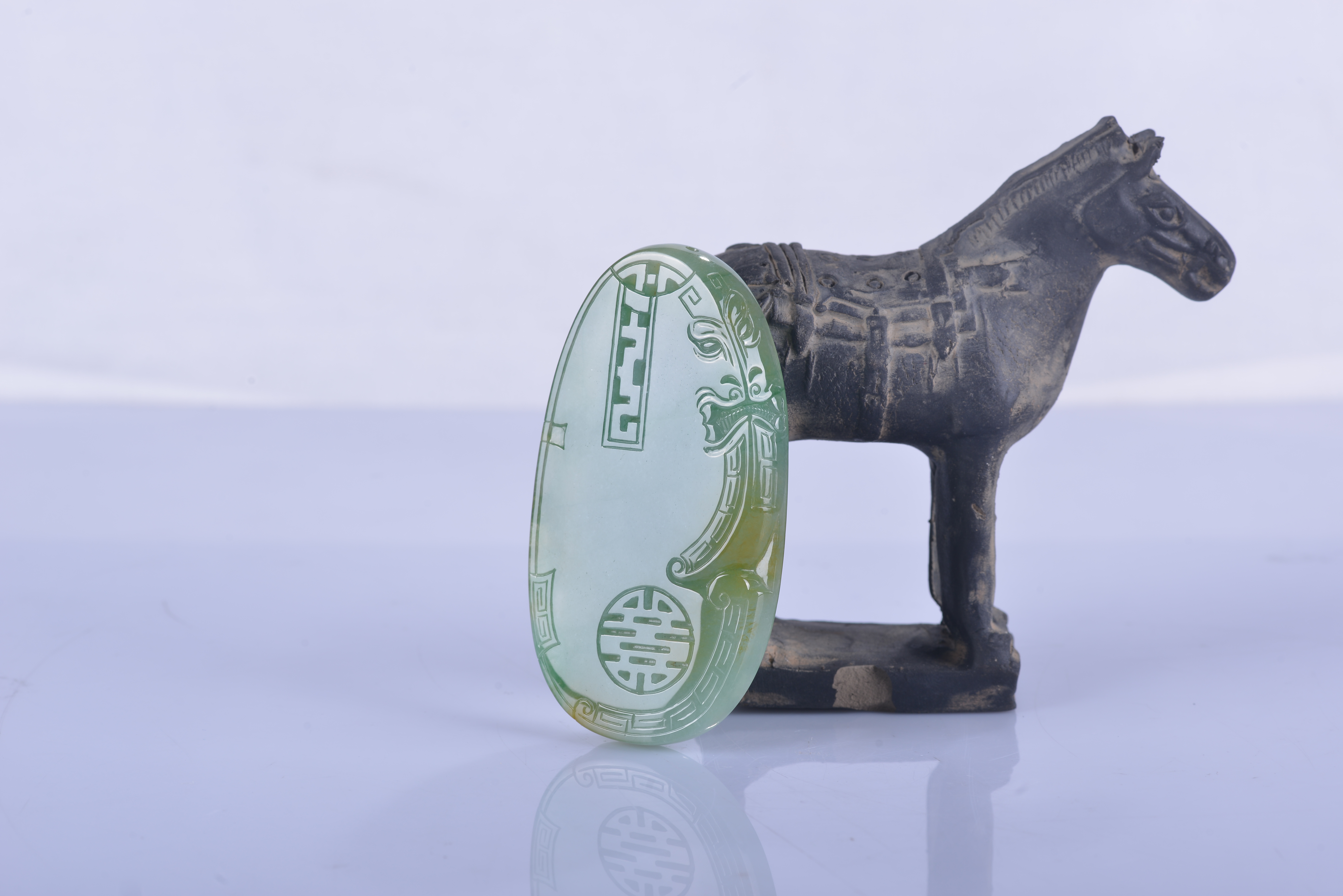 在王胜利看来,其实翡翠仿古牌比较小众,市场上只有少数翠友钟情这种款式,相对宗教或福寿吉祥类题材,数量也很低,难以形成规模效益。而且翡翠种色千变万化,每件作品都要根据材质不同而变化,没法简单复制,不适合的料子不能生搬硬套。