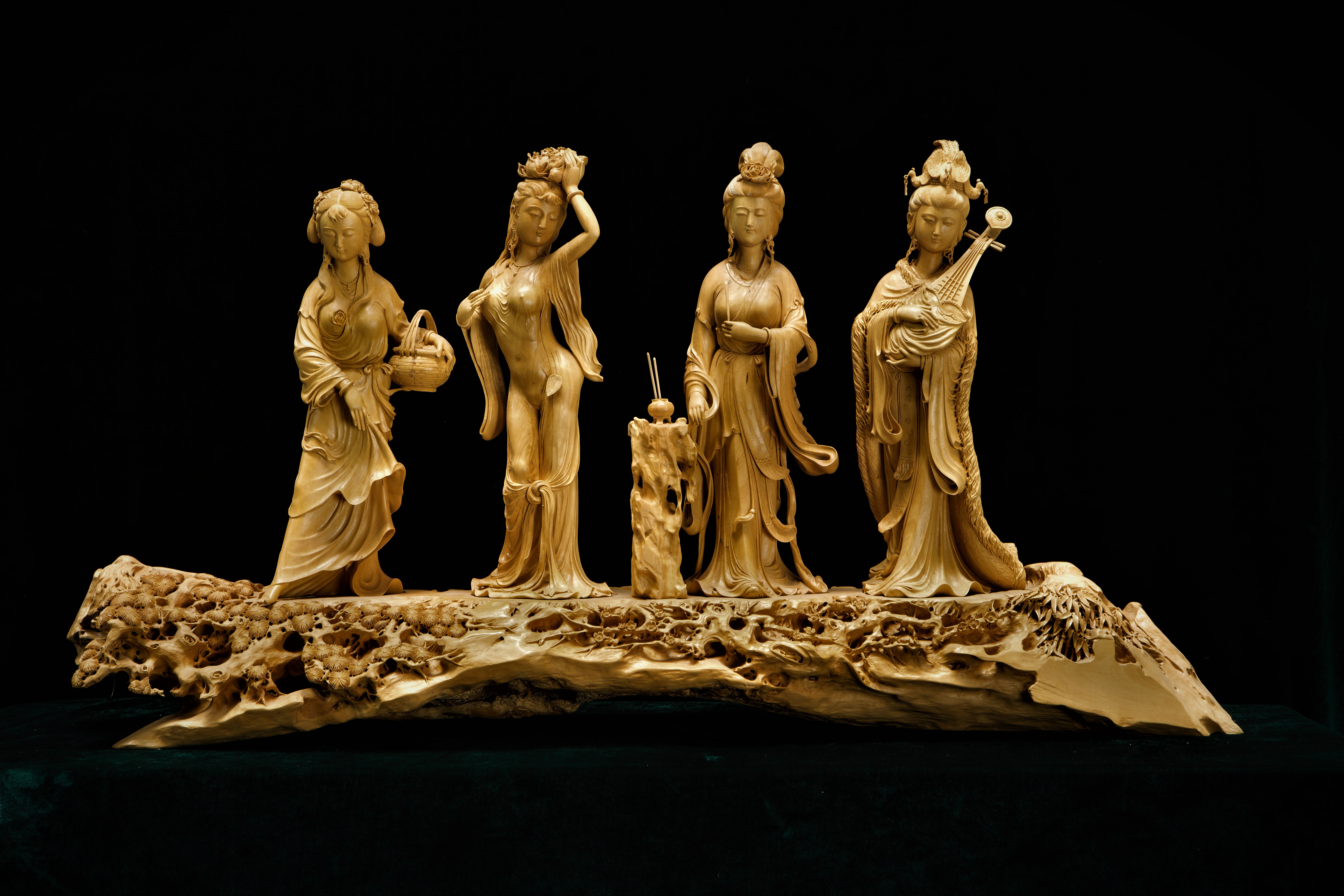 传统圆雕发展到“根雕”特别是对大型木雕作品具有极强的设计掌控能力,他创作的木雕作品,结构合理,层次分明,运用浮雕、镂雕、透雕技法极其娴熟,使得其作品具有很高的艺术欣赏性。