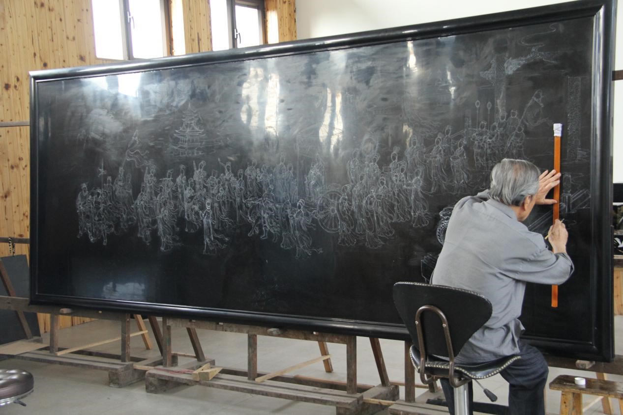 薛生金老先生正在创作作品。田宏 摄