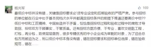 “最低价中标”在人民日报牵头下成众矢之的,建设领域更是深受其痛,广大网友纷纷吐言。