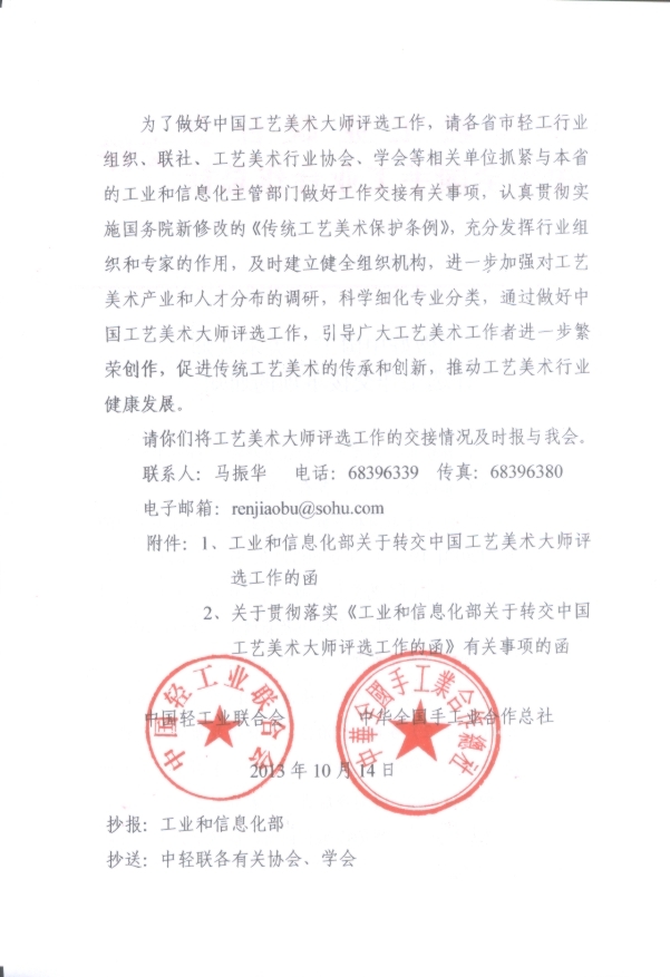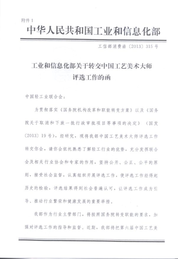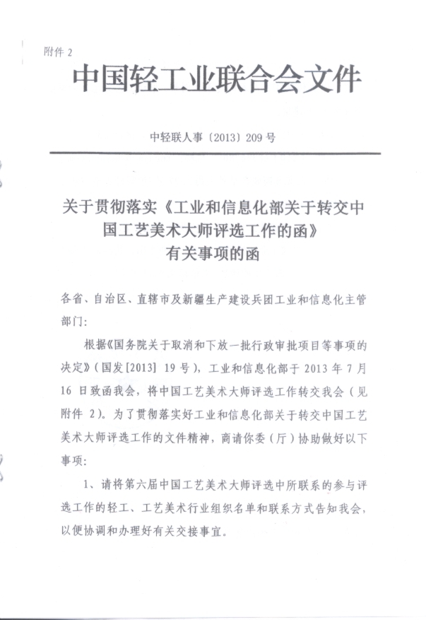 关于做好中国工艺美术大师评选工作交接事项的通知