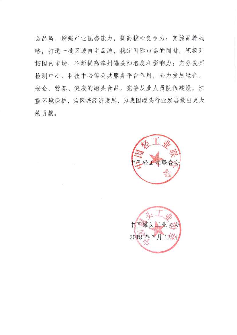 关于继续授予福建省漳州市“中国罐头之都”称号的通知