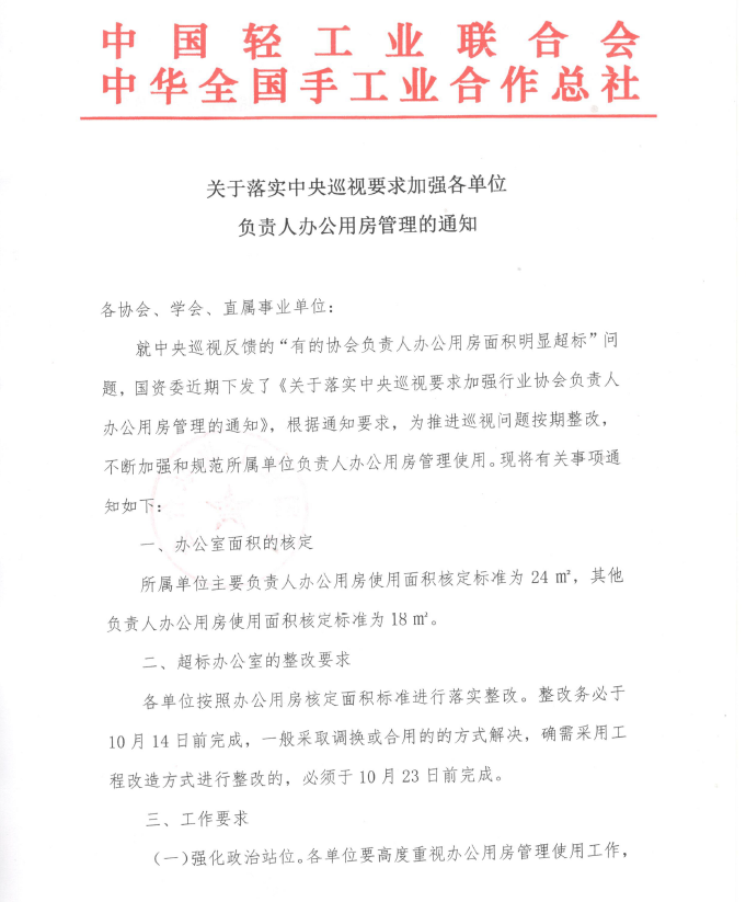 关于落实中央巡视要求加强各单位负责人办公用房管理的通知