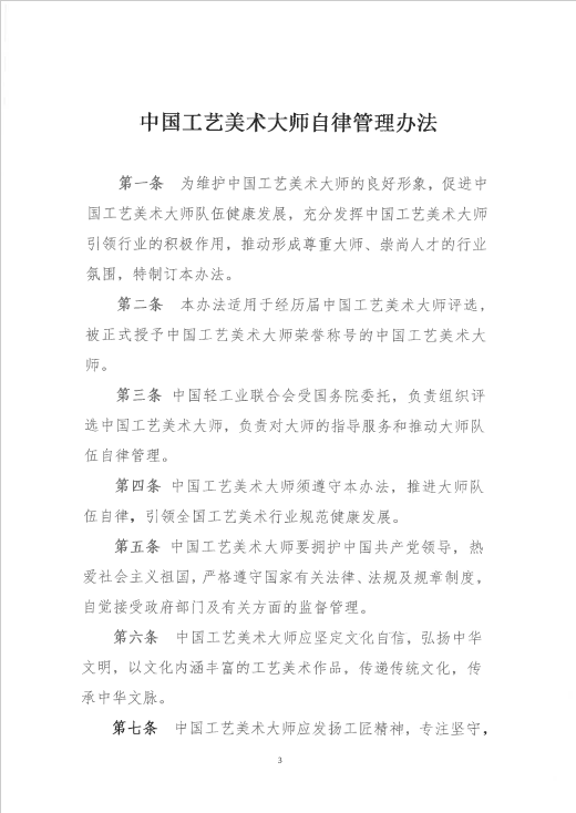 关于印发《中国工艺美术大师自律管理办法》 的通知