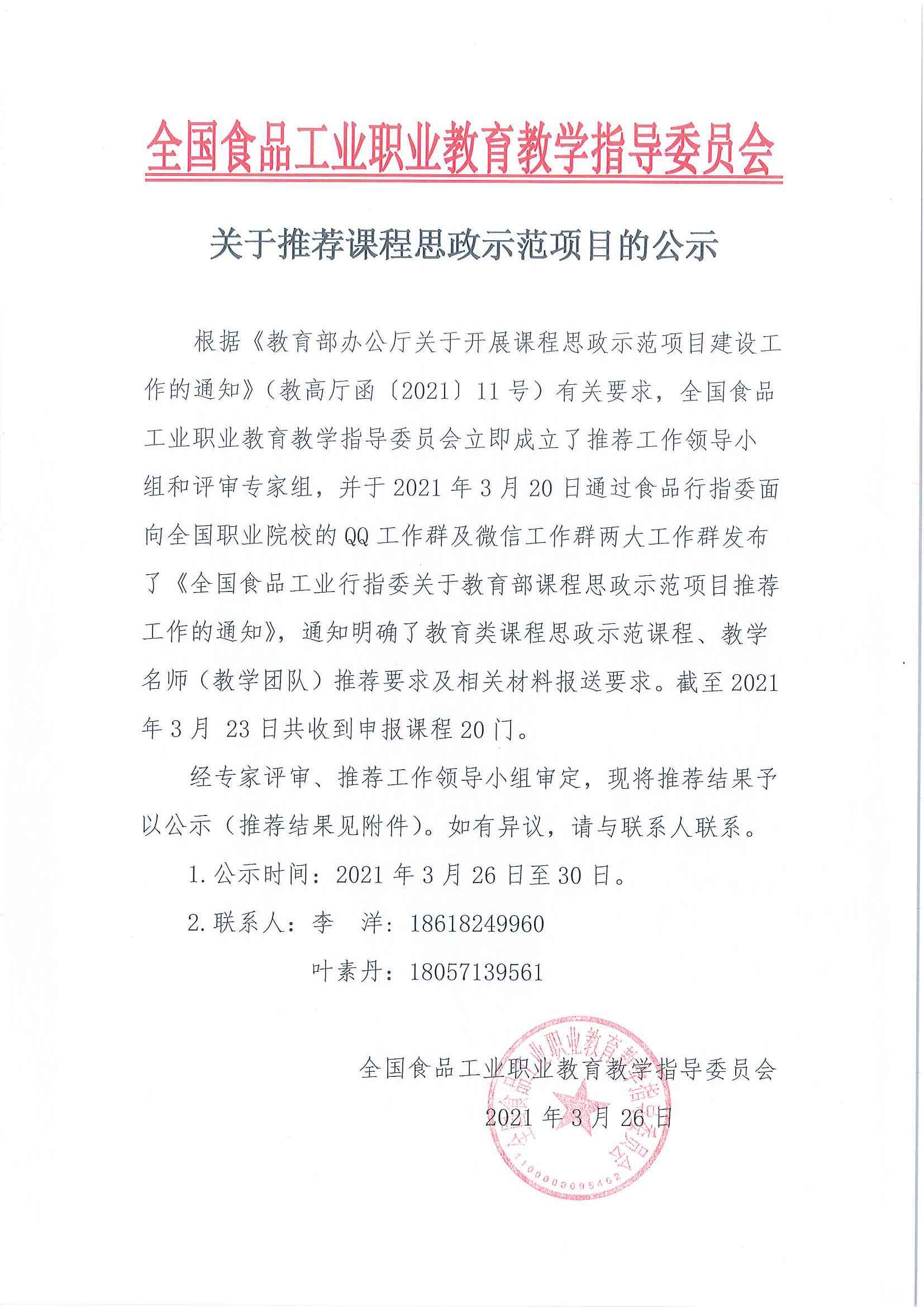 2021-03-26 来源:全国食品工业职业教育教学指导委员会