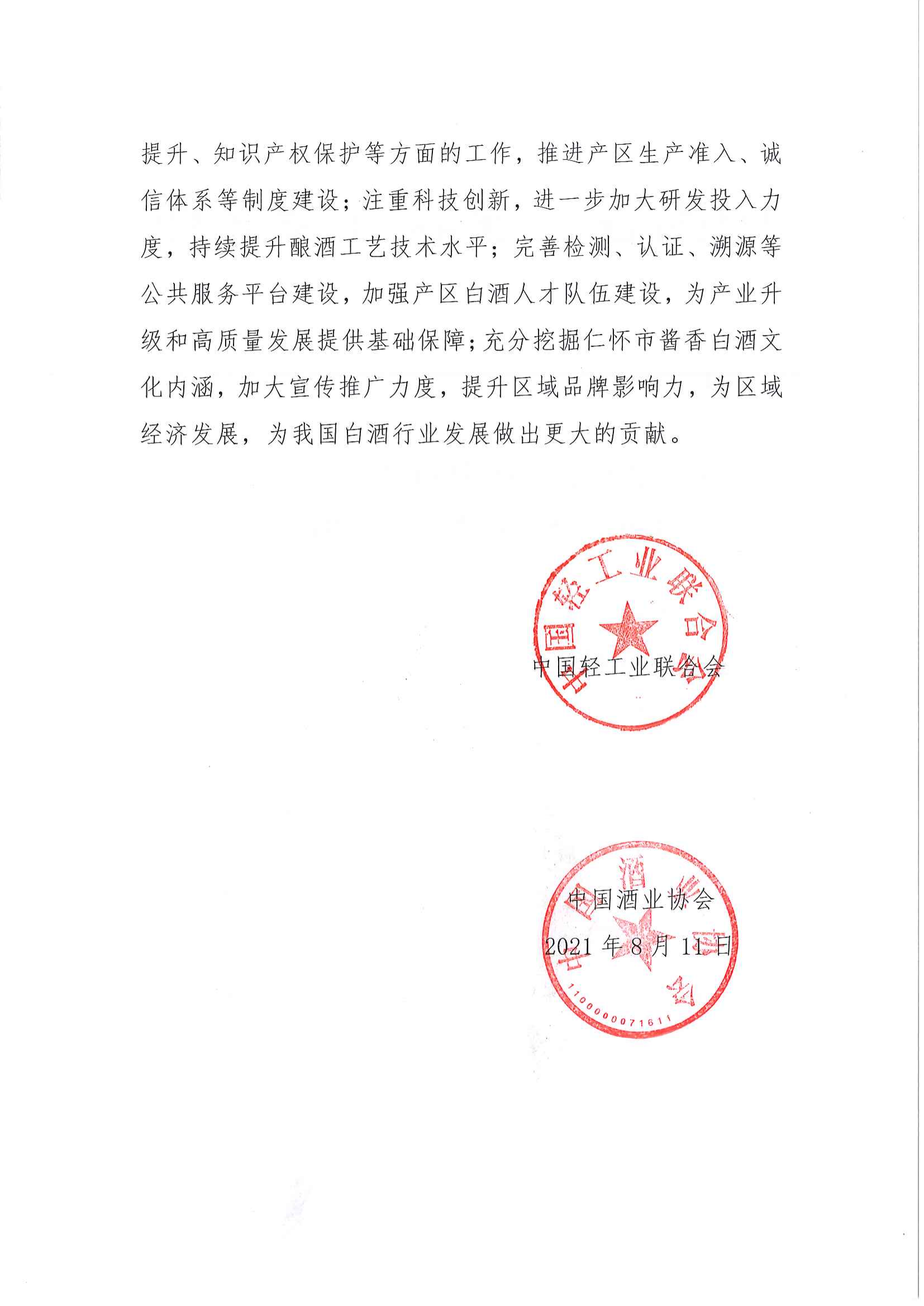 关于授予贵州省仁怀市“中国酱香白酒核心产区(仁怀)”称号的通知