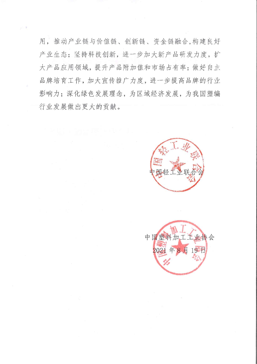 关于授予辽宁省康平县“中国塑编城·康平” 称号的通知