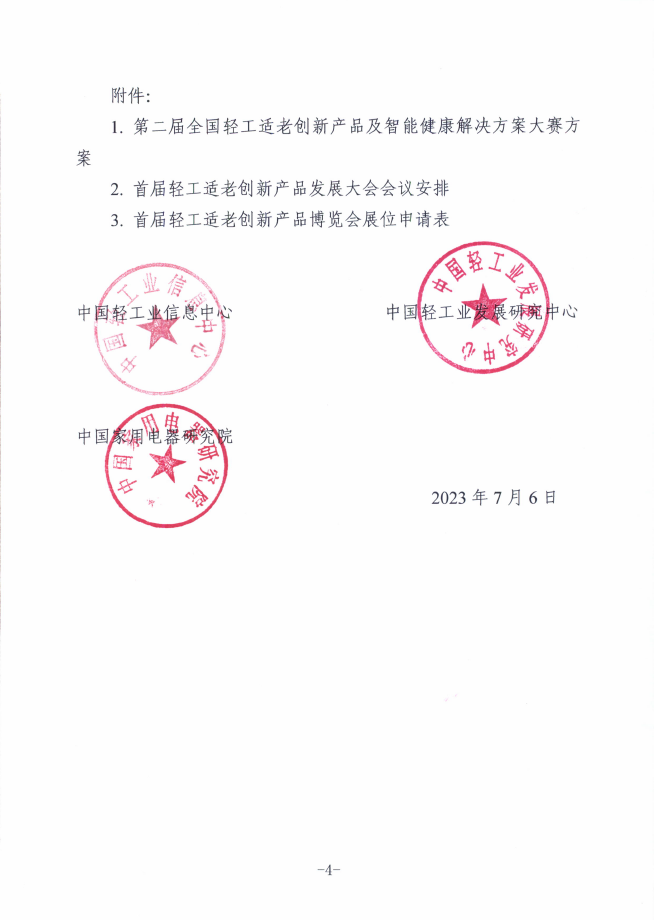 关于举办首届轻工适老创新产品博览会、轻工适老创新产品发展大会暨第二届全国轻工适老创新产品及智能健康解决方案大赛的通知