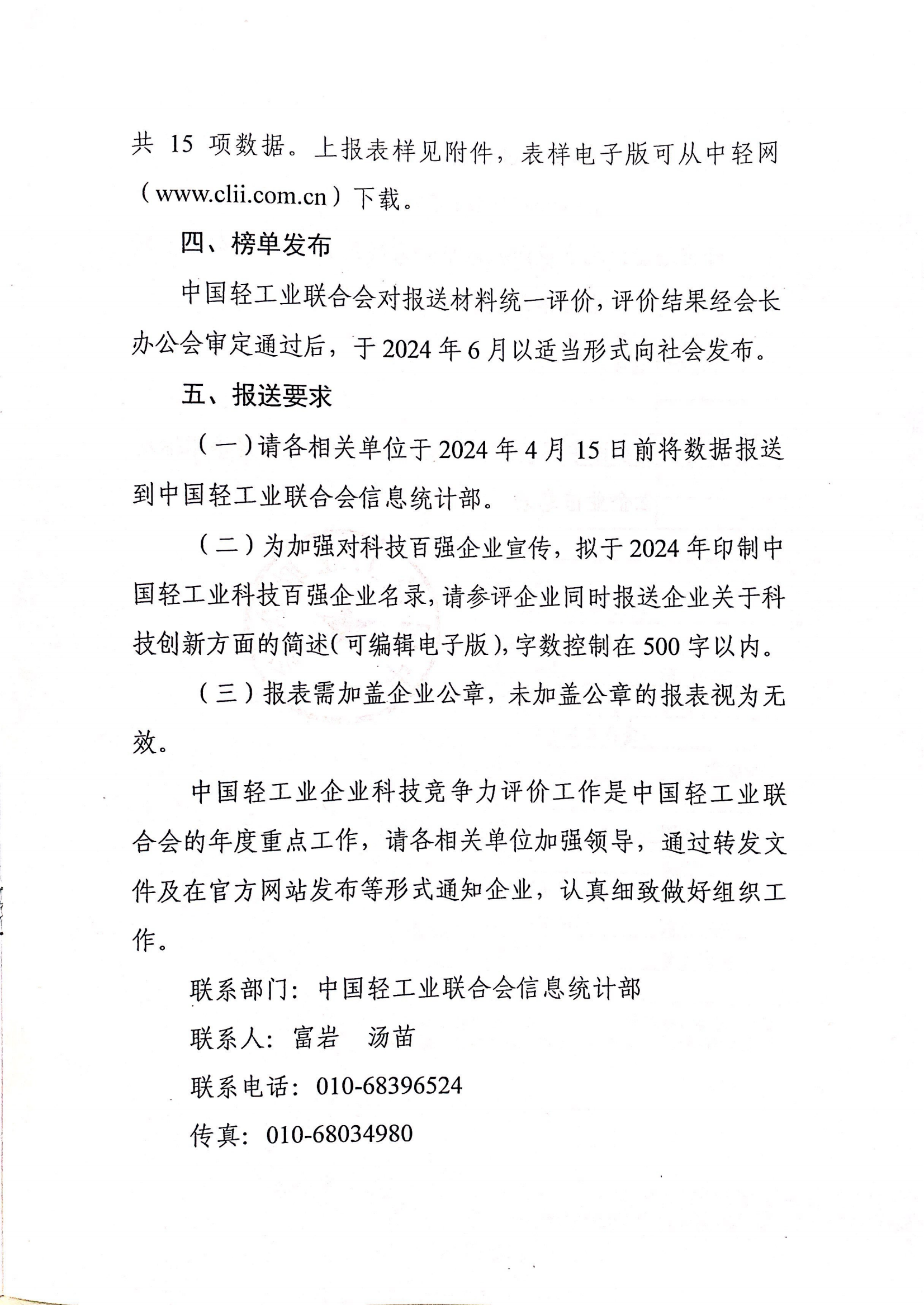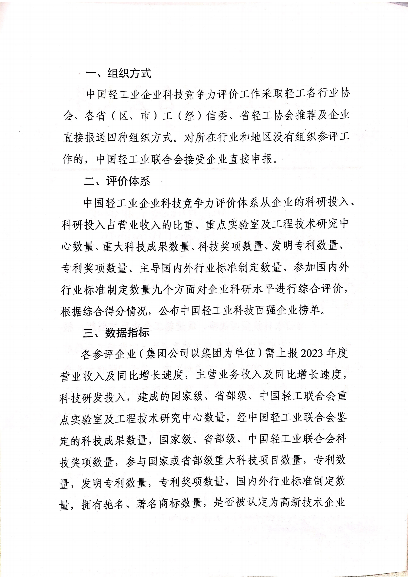 关于开展2023年度中国轻工业企业科技竞争力统计评价工作的通知