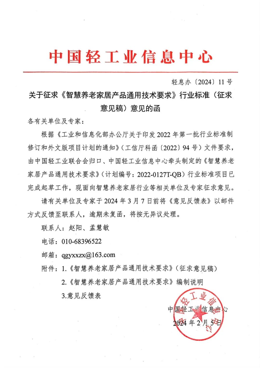 工信部行业标准《智慧养老家居产品通用技术要求》面向家居行业征求意见