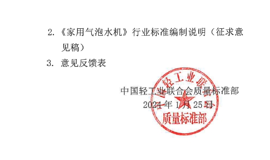 关于征求《家用气泡水机》行业标准(征求意见稿)意见的函