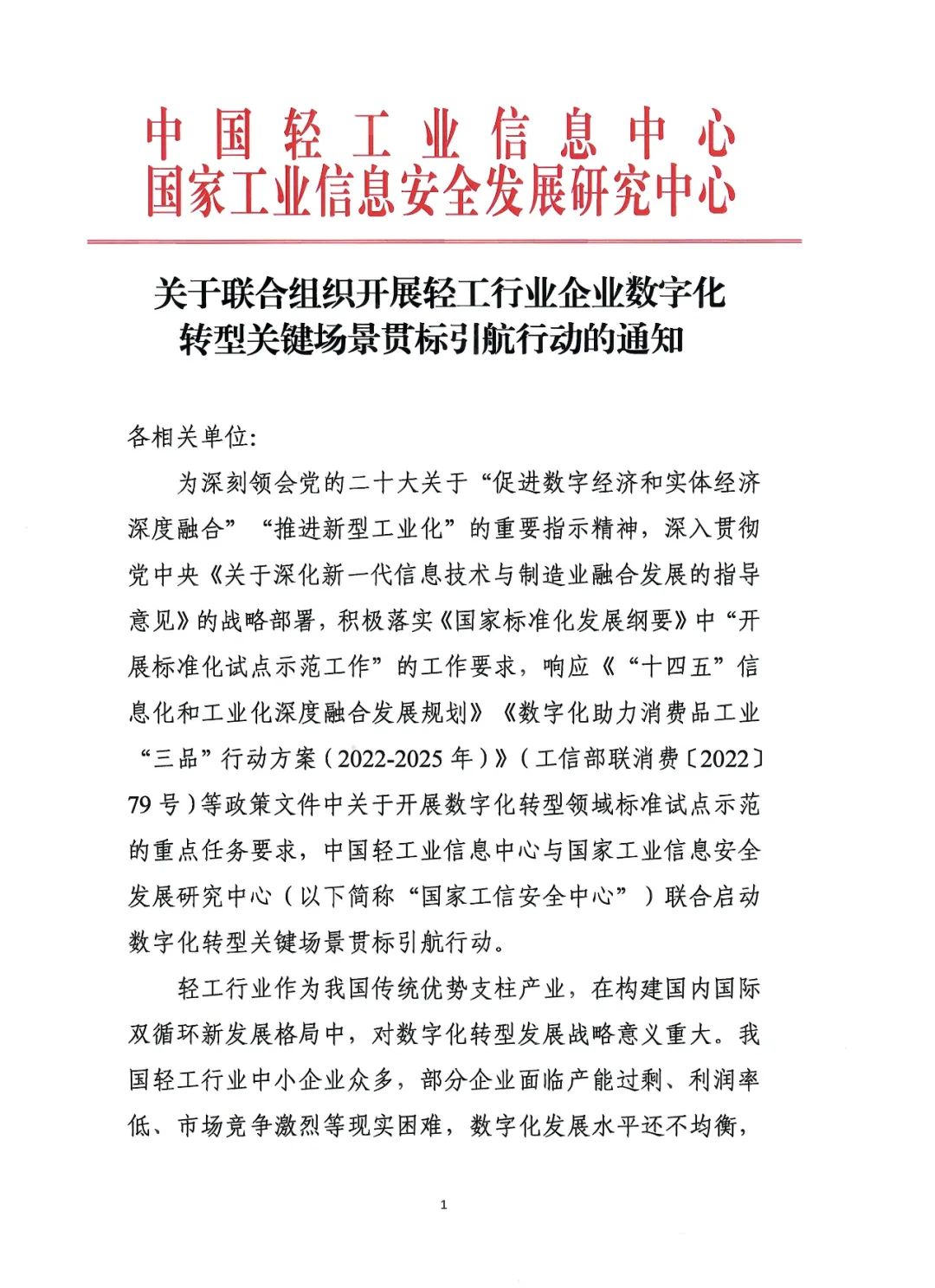关于联合组织开展 企业数字化转型关键场景贯标引航行动的通知