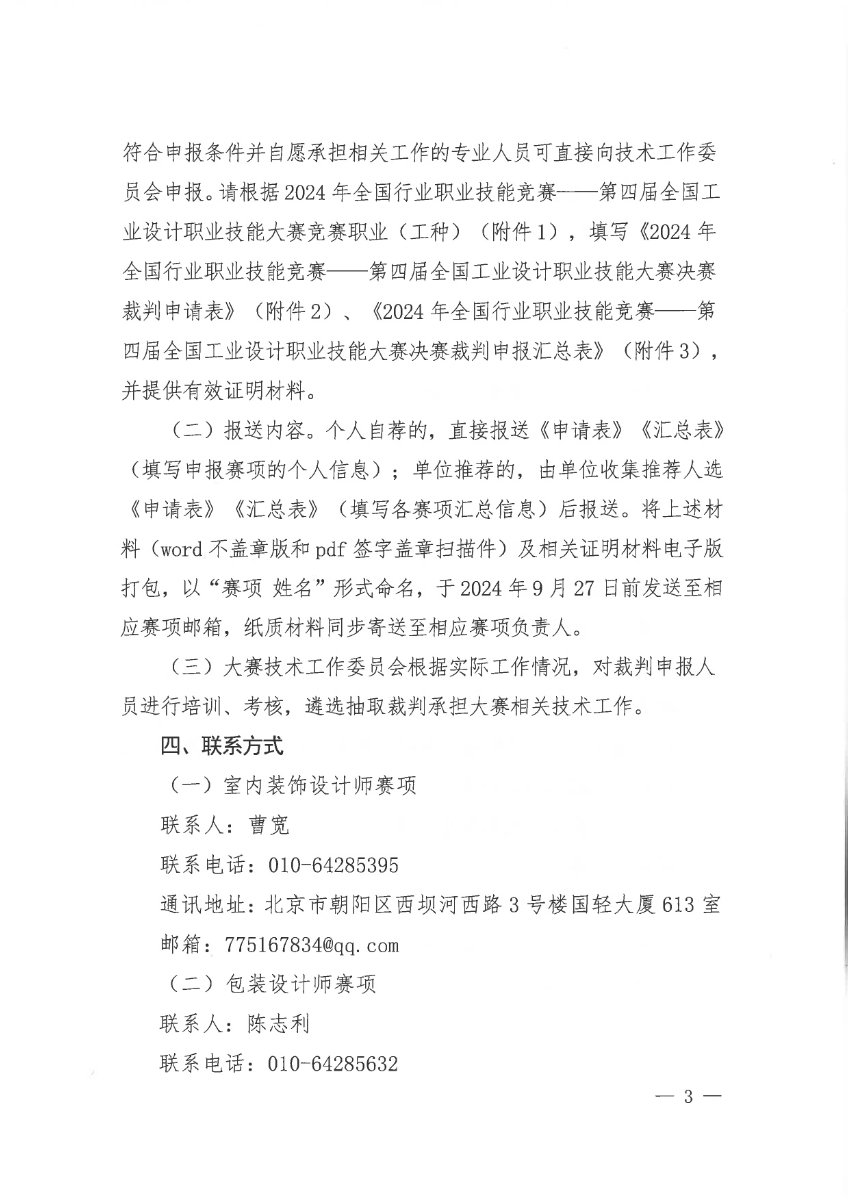关于征集2024年第四届全国工业设计职业技能大赛决赛裁判的通知