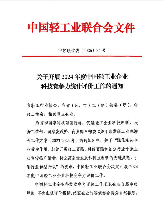 2024年度中国轻工业企业科技竞争力统计评价工作的通知