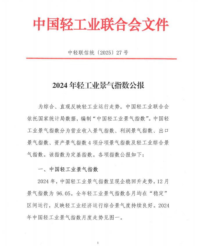 2024年轻工业景气指数公报