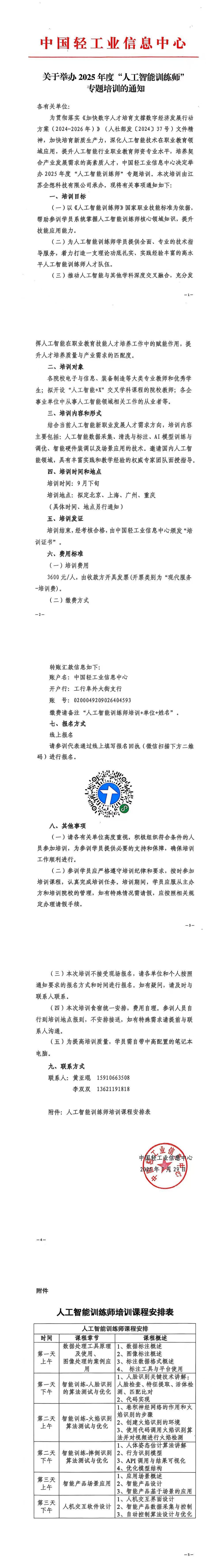 关于举办2025年度人工智能行业技能培训“人工智能训练师”专题培训的通知