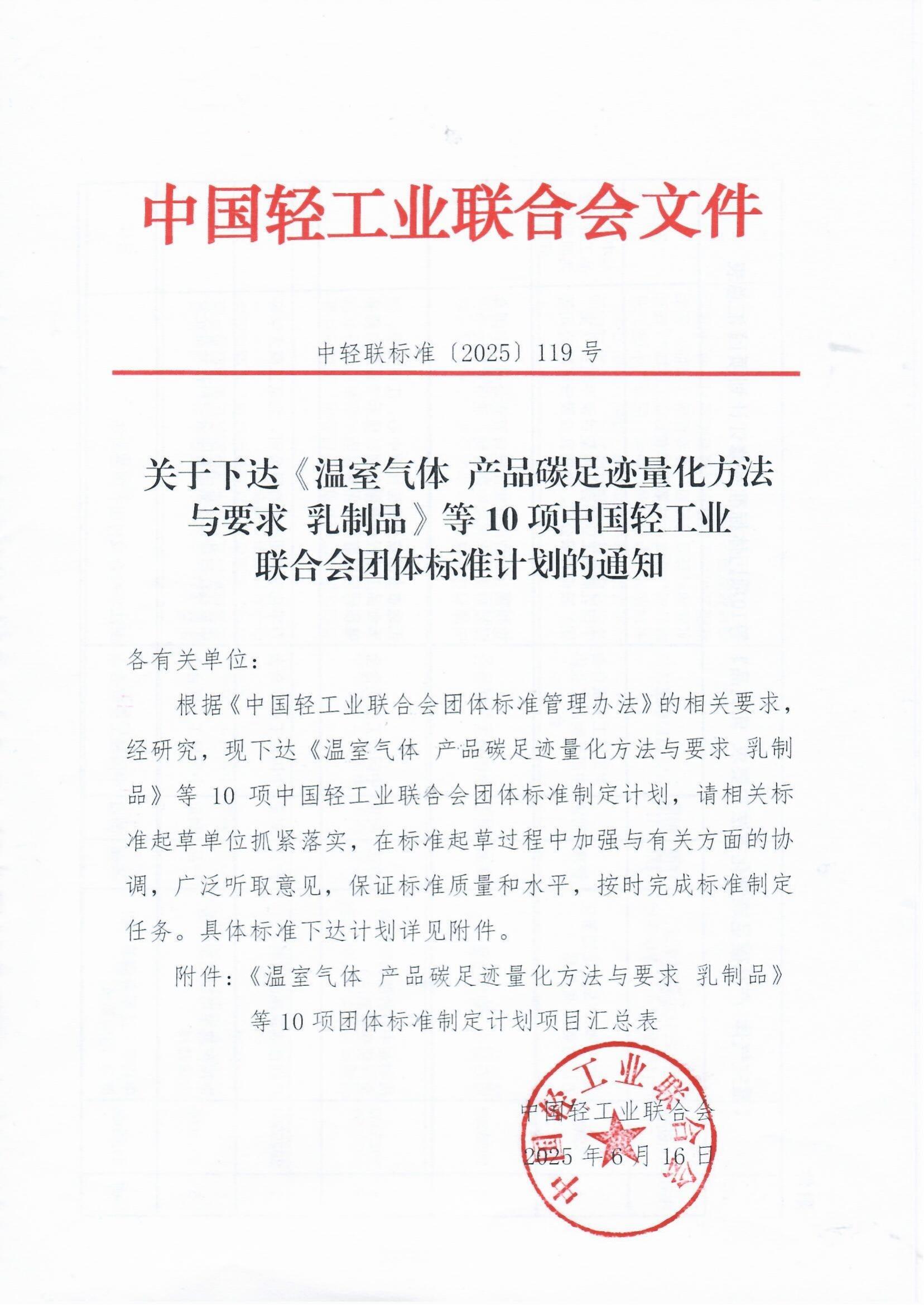 关于下达《温室气体产品碳足迹量化方法与要求乳制品》等10项 团体标准计划的通知