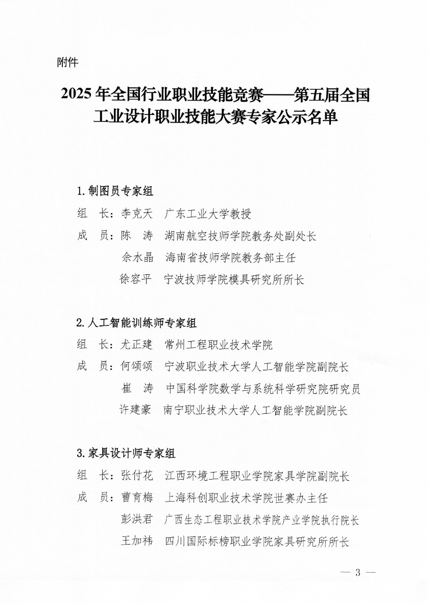 关于对2025年全国行业职业技能竞赛——第五届全国工业设计职业技能大赛专家名单进行公示的通知
