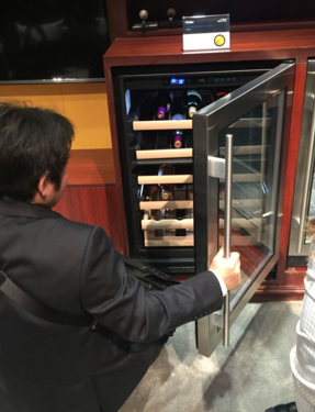 吸引外商目光的不止是固态制冷酒柜,来自卡萨帝的另一款酒柜——博芬酒柜也在本次CES展上风采尽显,其独立双温区设计让不少外商叹为观止。众所周知,红、白葡萄酒所需的环境条件各不相同,不正确的储藏方式会严重影响其口感。而博芬酒柜每个温区均可独立调温,为各种类别的葡萄酒提供了最合适的储存环境。
