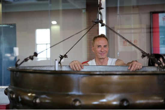 手酿酒一直是北京二锅头酒博物馆的特色服务,专属的DIY定制项目。让客人独家体验酿酒过程,把热情和希冀灌注到每一个环节,一步步追忆悠久的酒文化。客人们可以亲自参与选陶坛、起地缸,拌辅料,装甑蒸馏,看花摘酒,测试酒度,封坛窖藏的每一个环节,过程均有酿酒技师在旁指导。而奥利弗大叔的这趟神奇的手酿酒之旅亦得神秘高人相助。这位幕后的神秘高人即是红星二锅头的第九代传人——张坤女士。从五岁就开始喝酒的她这回亲自上阵,手把手教学,势要一点点的把传承三百多年的二锅头酒文化渗透给我们的国际友人。