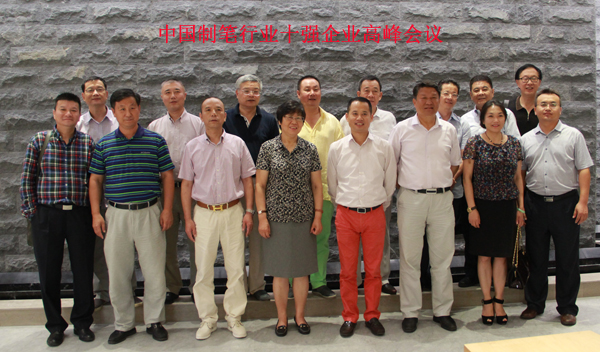 中国制笔协会于2014年7月25日在宁波召开了第二届“中国制笔行业十强企业”高峰会。出席会议的有:中国制笔协会理事长王淑琴、秘书长吴少平、宁波市经信委副主任周学明、贝发集团股份有限公司董事长邱智铭、上海晨光文具股份有限公司总裁陈升明、真彩文具有限公司总经理陆宪明、温州市爱好笔业有限公司董事长张汉平、青岛昌隆文具有限公司总经理解思鹏、上海英雄(集团)有限公司副总经理姚庆、上海老凤祥公司董事长胡书刚、温州天骄笔业有限责任公司董事长韩爱国、温州盛丰笔业有限公司董事长南中德、广东金万年文具有限公司董事长周育标、苏州雄鹰笔墨科技有限公司董事长金桂英(出席企业排名不分先后)等相关领导出席了会议。