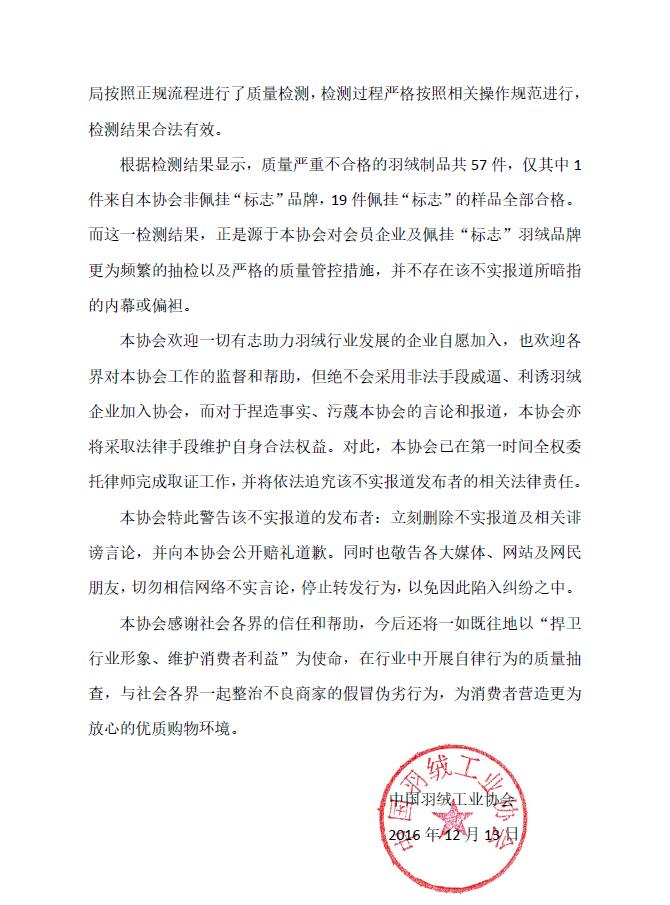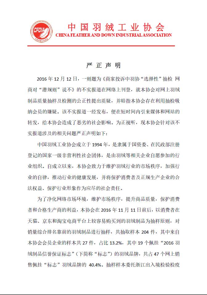 | 2、 | 2016年中国羽绒工业协会双11线上羽绒制品质量抽查羽绒被严重不合格名单 |