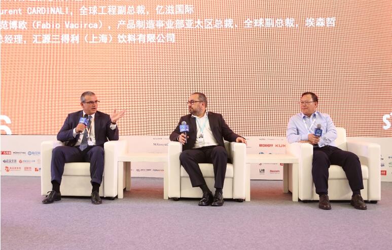 亿滋国际全球工程副总裁Laurent CARDINALI,埃森哲产品制造事业部亚太区总裁、全球副总裁范博欧(Fabio Vacirca),汇源三得利(上海)饮料有限公司总经理李凤起讨论了数字化革命将面临的挑战以及数字化转型给我们带来的机会。“数字化革命带来的主要是端到端的工业链革命,从消费者一直到整个原材料的生产,整个过程都将面临改变。”亿滋国际全球工程副总裁Laurent CARDINALI说。数字革命不仅仅依靠技术,更是从根本上改变了供应商、供应链和产品营销的方式。
