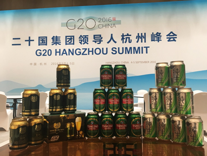 作为G20杭州峰会招待用酒,青岛啤酒经典1903、纯生、奥古特等多款产品齐齐亮相G20峰会宴会餐桌,为各国政要和嘉宾们带来源自中国的精心慢酿与鲜活纯正的舌尖享受。