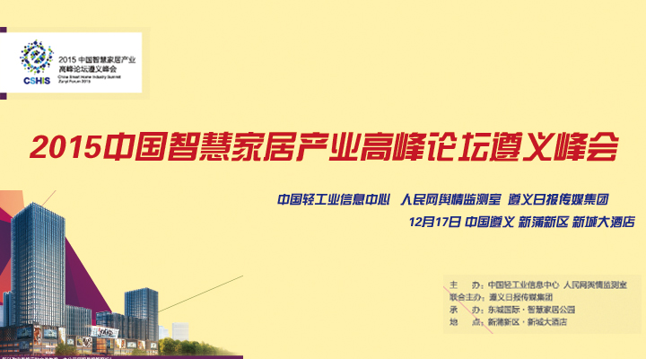 联合人民网舆情监测室、遵义日报传媒集团定于2015年12月16日-18日在遵义举办2015中国智慧家居产业高峰论坛遵义峰会。