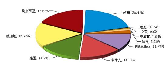 对东盟出口的主要贸易伙伴,占对东盟市场出口总额的20.44%。今年上半年对菲律宾出口同比增长了17.5%,对印度尼西亚出口下降21.1%。塑料、皮革和农副食品是对东盟出口较大的行业。与去年同期我国