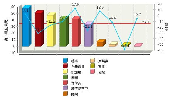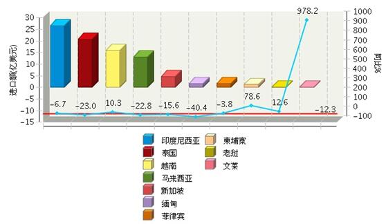 对东盟国家出口正增长19.74%相比,对东盟国家出口呈现快速下降态势。