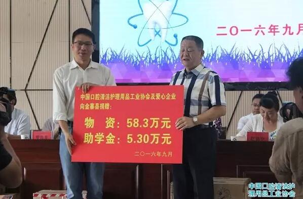 在全国第28个爱牙日里,中国口腔清洁护理用品工业协会在部分会员企业的大力支持下,在我国著名革命老区,安徽省金寨县举办了一次有声有色的公益宣传与扶贫捐赠活动。活动包括口腔健康教育、口腔疾病义诊、口腔护理产品和宣传册捐赠,以及贫困中小学生帮扶等。参加活动的有300多名中小学生和金寨县各中小学校老师代表,以及县政府相关部门负责人。金寨县县委常委、组织部长到会讲话并为协会赠送锦旗。活动取得圆满成功。