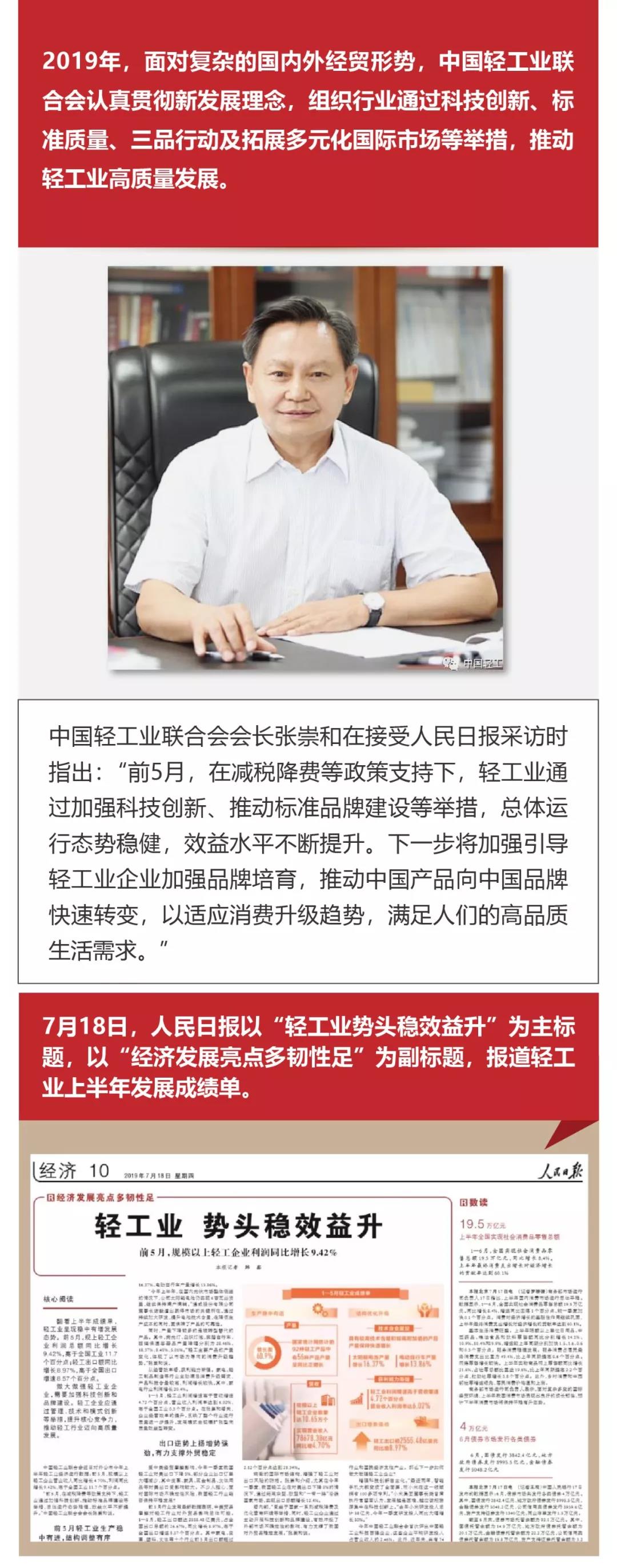 张崇和表示,下一步将加强引导轻工业企业加强品牌培育,推动中国产品向中国品牌快速转变,以适应消费升级趋势,满足人们的高品质生活需求。