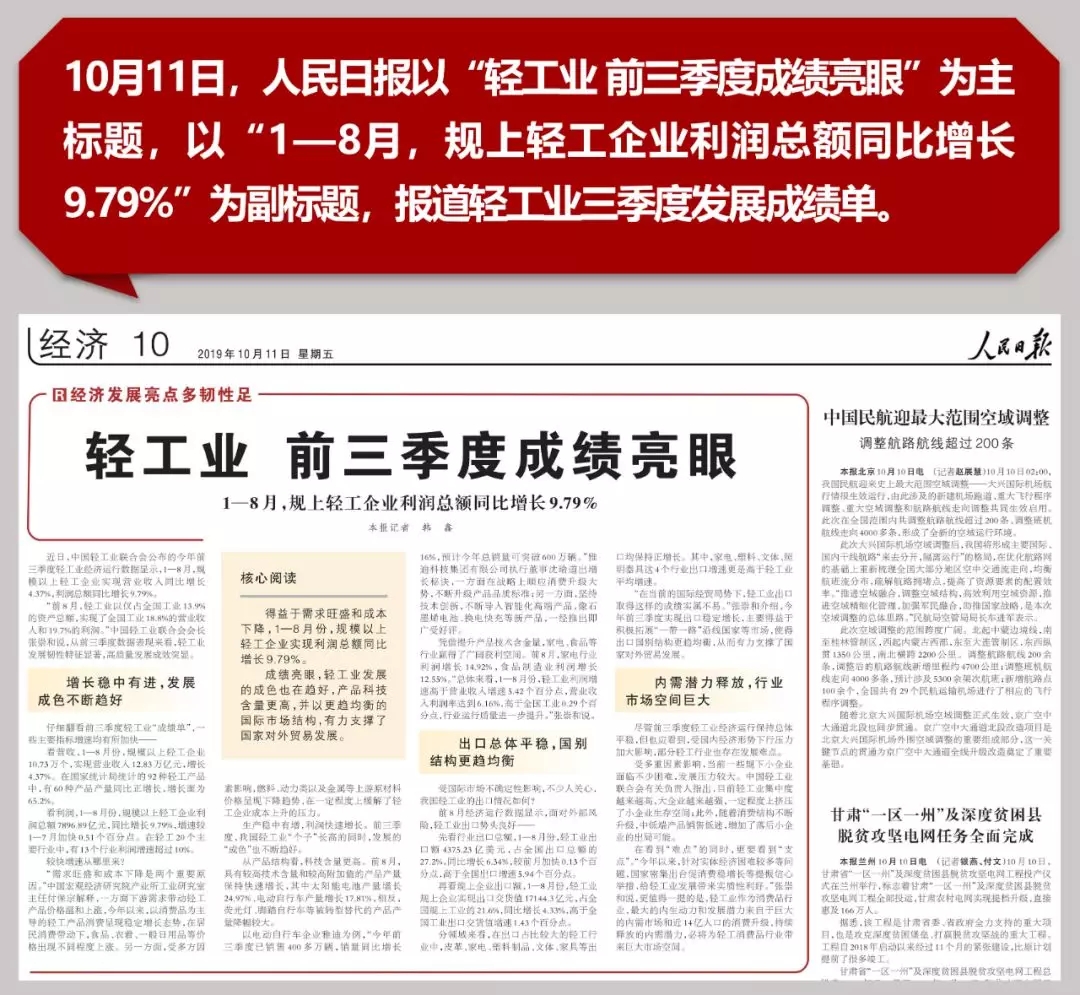 人民日报:轻工业前三季度成绩亮眼