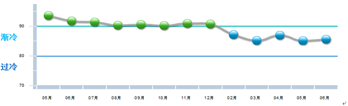 2014年上半年,山东省利润景气指数一直处于渐冷区间。