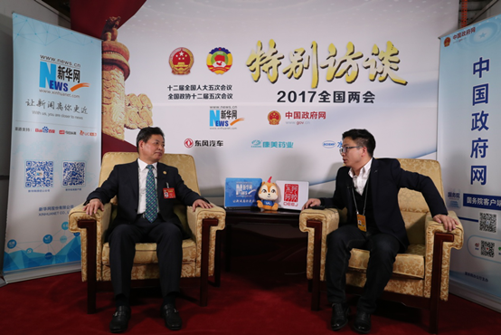3月9日,全国政协委员、丝绸之路国际总商会主席、大唐西市集团董事局主席吕建中到设在人民大会堂的新华网两会特别访谈演播厅接受专访。新华网 赵煜彤 摄