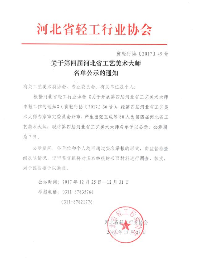 第四届河北省工艺美术大师即将出炉