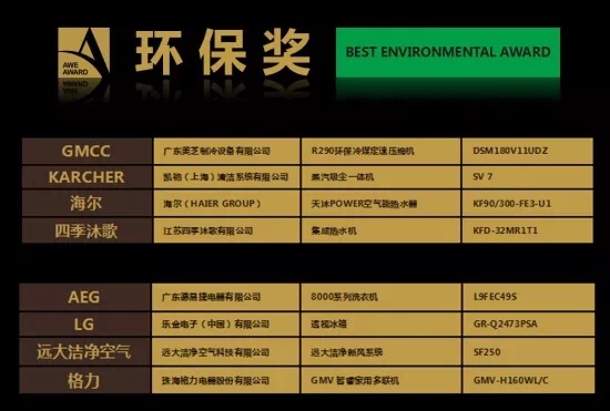 AWE艾普兰奖揭晓 8款精品问鼎家电业至高荣誉