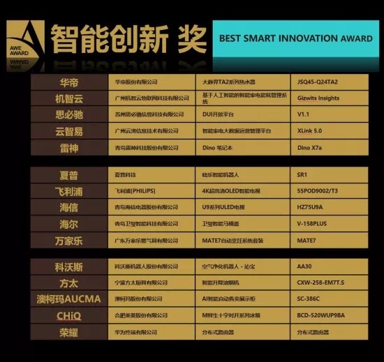 由AWE组委会主办的艾普兰奖,是家电和消费电子领域最具影响力的产品评审表彰活动,产品水平高、覆盖面广,代表了年度家电及消费电子领域最高科技水平和最时尚设计,被誉为“全球智慧生活领域奥斯卡”。