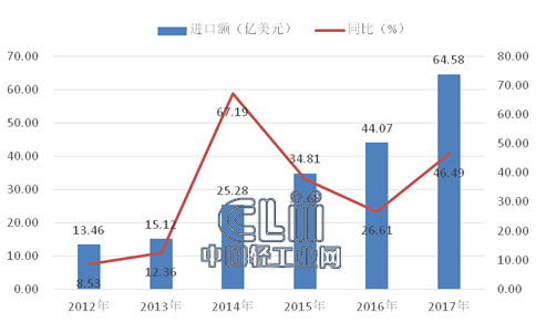 2017年,我国化妆品全年累计进口额64.58亿美元,同比增长46.49%。