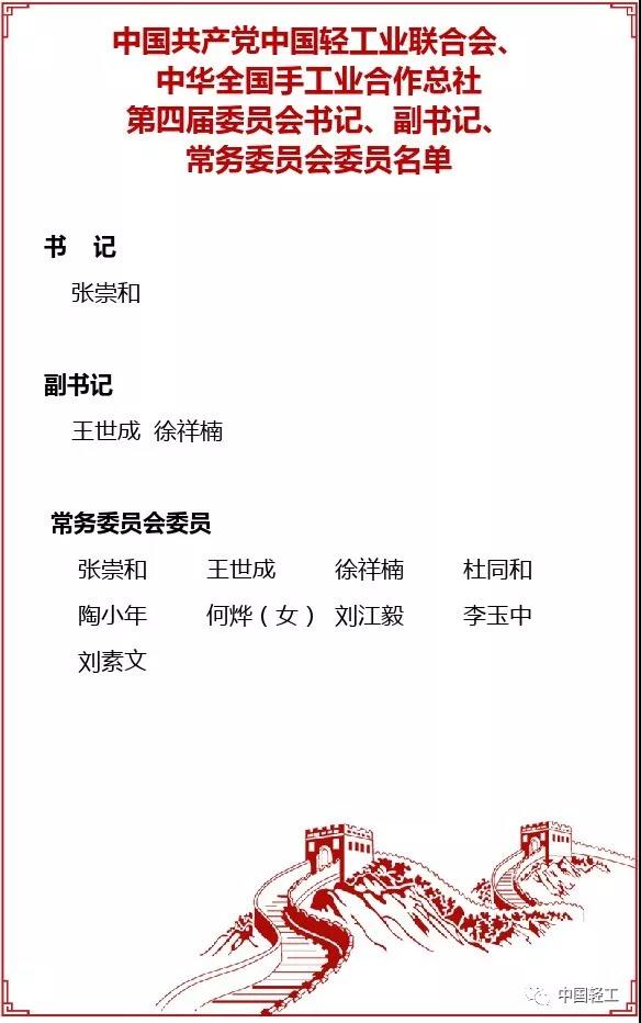 中轻联、总社第四届委员会书记、副书记、常务委员会委员名单