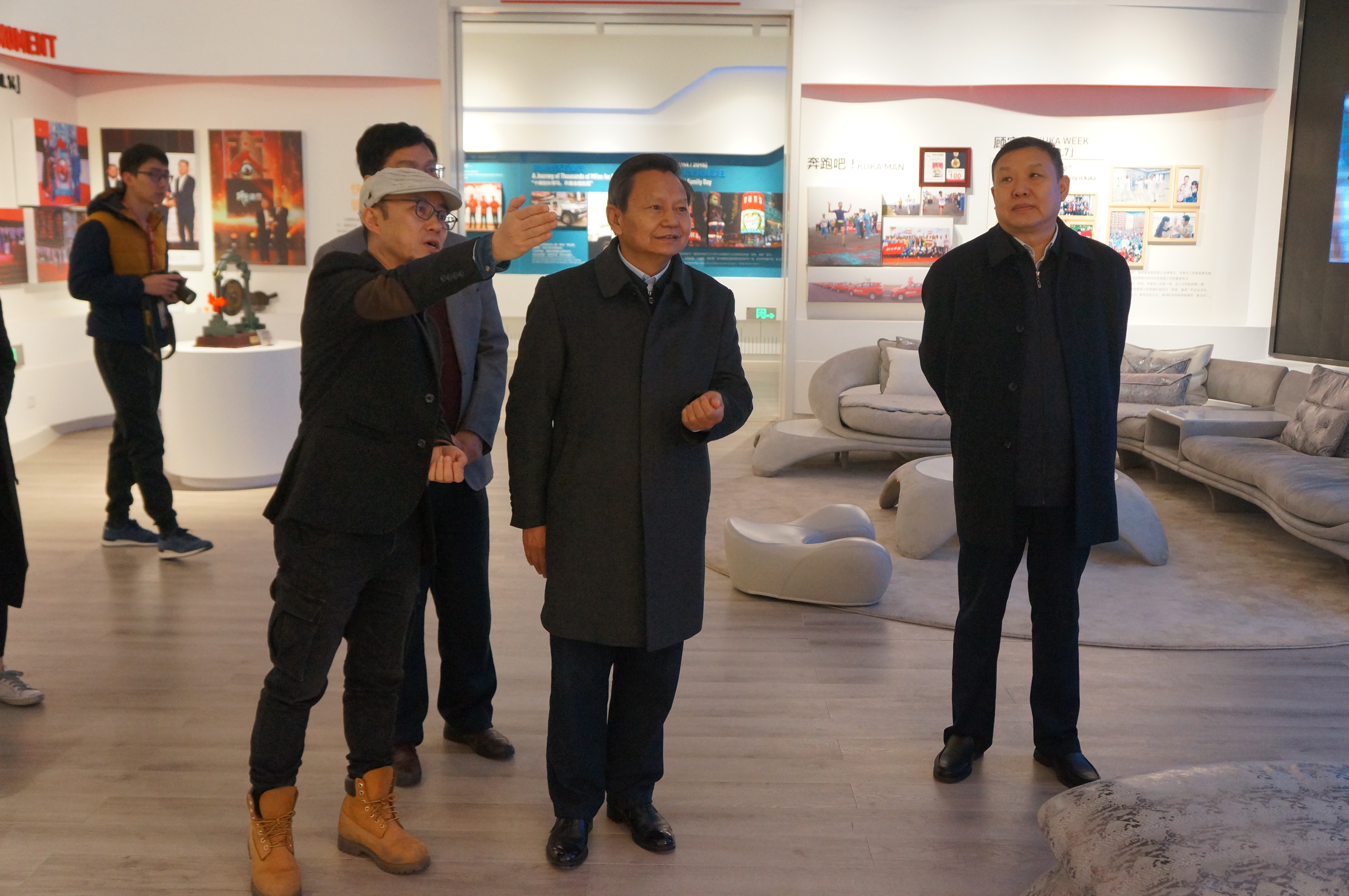 在顾家家居总部创业厅,张崇和仔细观看顾家发展历程图片展,了解顾家发展历史,感受顾家企业文化。据顾家家居副总裁刘宏介绍,顾家家居的设计师都是年轻人,年轻人设计的产品,与年轻消费者有共鸣。张崇和表示,作为家居产品,无论是款式还是材质,都需要好的品牌特色,要紧跟不断升级的消费需求,让产品更个性、更时尚,满足消费者日益增长的美好家居生活需要。